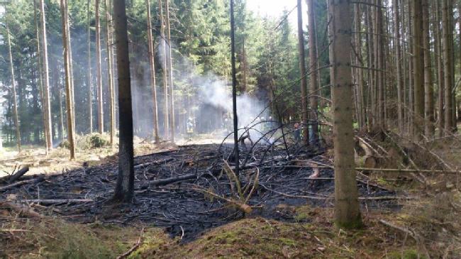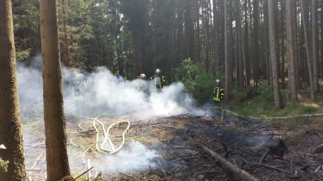 Gemeldet wurde ein kleiner Flächenbrand. Beim Eintreffen wurde jedoch offenes Feuer auf rund 70 m² im Wald festgestellt, so dass die Alarmstufe auf "Waldbrand" erhöht wurde.
